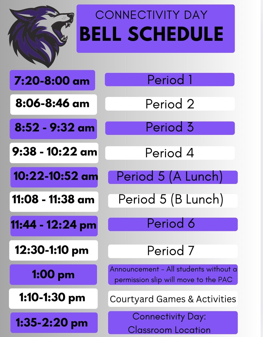 School Hours: 7:20 a.m. – 2::20 p.m.;
